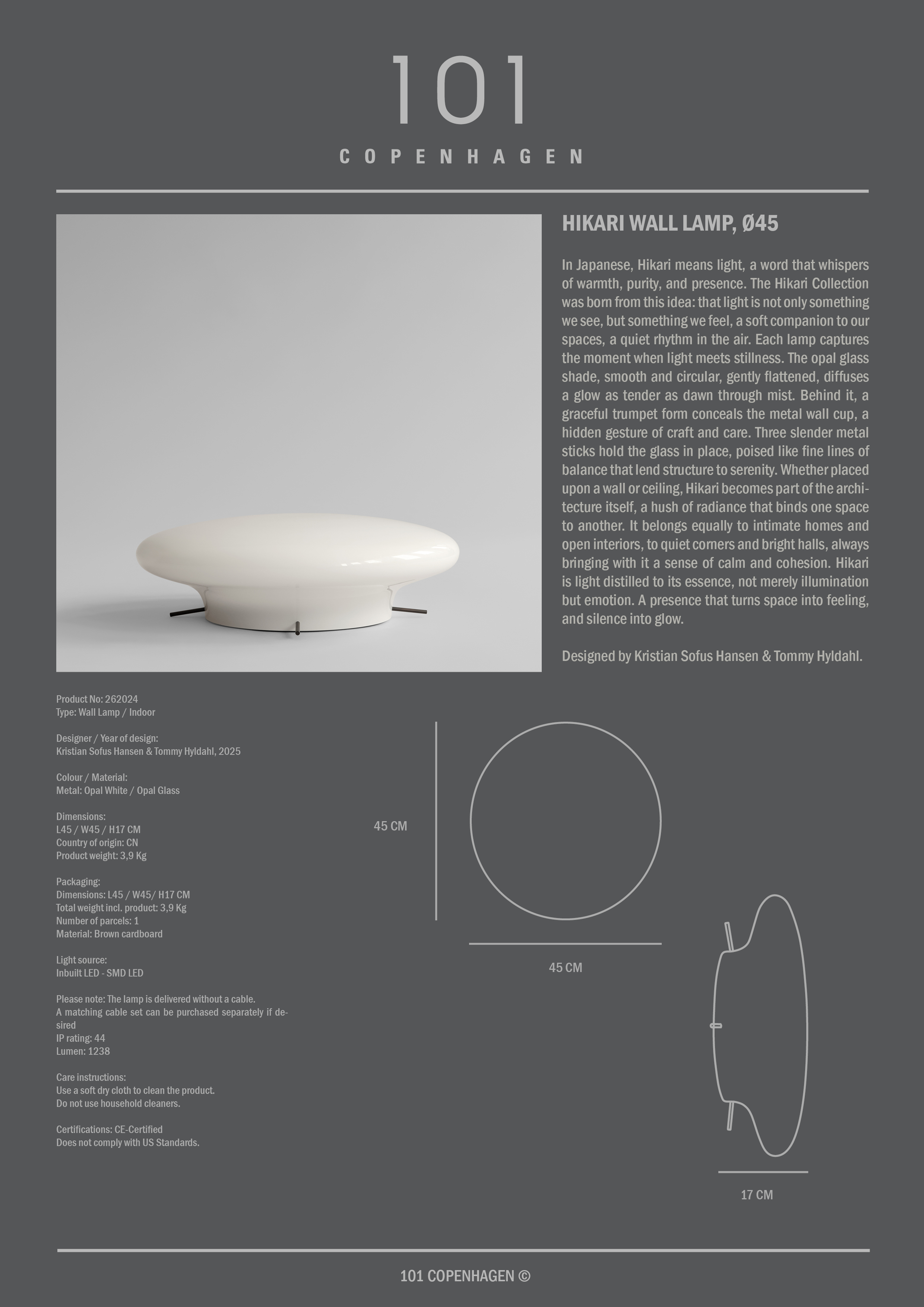 101 Copenhagen Hikari Wandlampe Ø45 Opalweiß 599 € Live-Preisvergleich Lieferbar in 30–40 Tage KaufenMehr Informationen zu den Produkten Kostenloser Versand ab 150 € Ausgenommen große Möbel und andere ausgewählte Produkte 365 Tage Rückgaberecht Autorisierter Händler