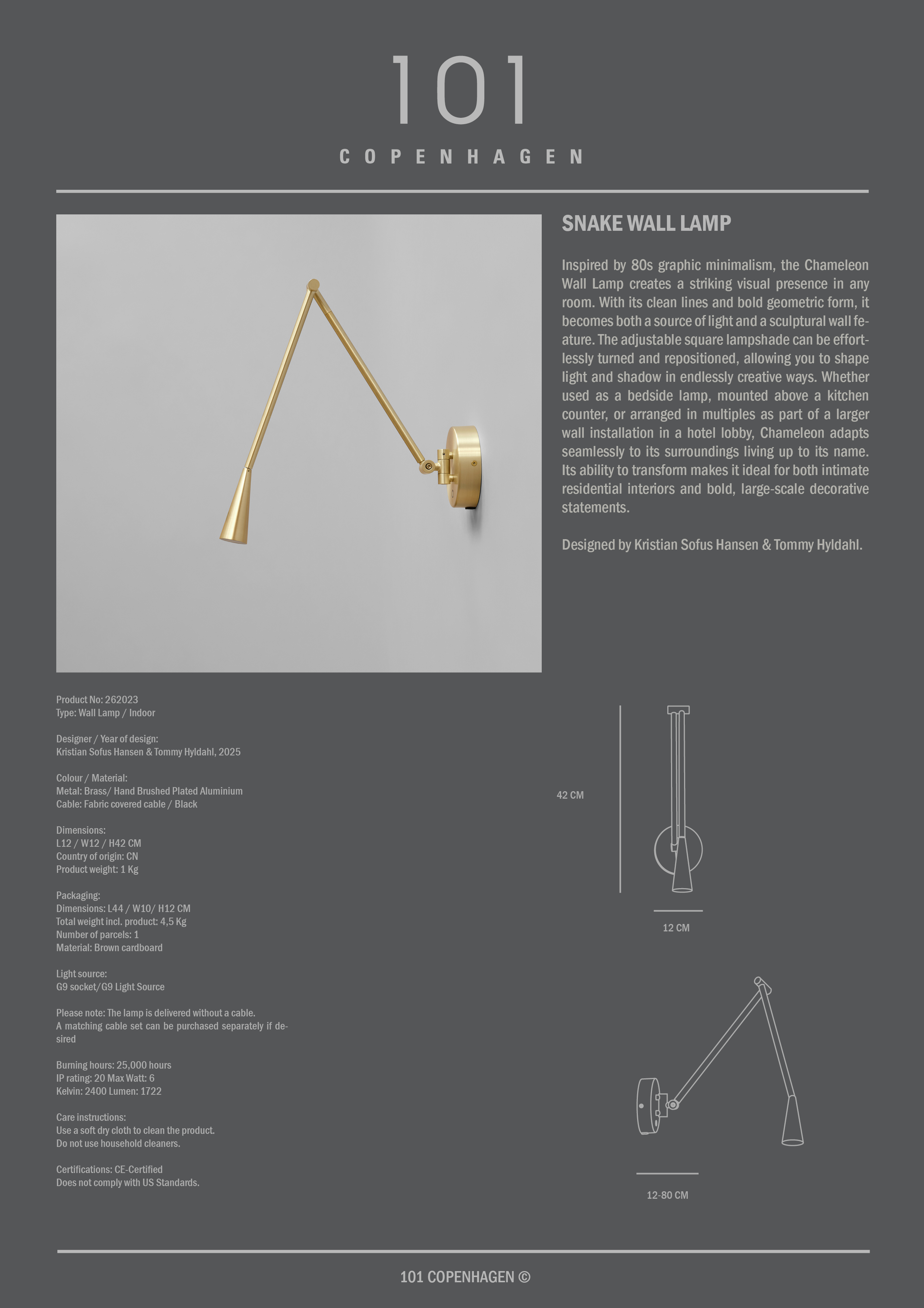 101 Copenhagen Schlangen Wandlampe Messing