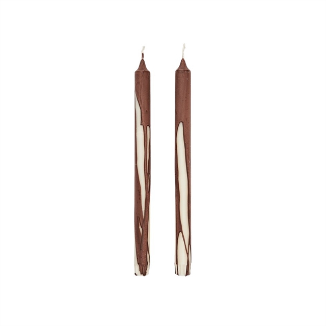 Die Drip Candles von Ferm Living sind mehr als nur Kerzen. Sie sind kleine, dekorative Objekte für jeden Raum. Jede Kerze besteht aus reinem Stearin und zeichnet sich durch ihre charakteristische, handgetropfte Oberfläche aus, bei der eine tiefe, dunkle Farbe über einen hellen Lampensockel fließt. So entsteht ein lebendiges Spiel aus Farbe und Textur, das den Kerzen eine fast skulpturale Ausdruck verleiht. Brenndauer ca. 9 Stunden.