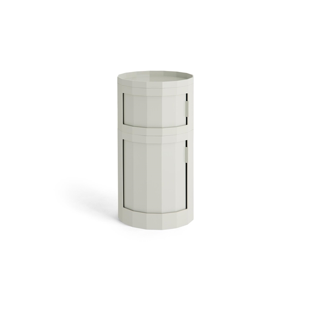 Die Serie Facet wurde vom niederländischen Designer Stefan Scholten für HAY entworfen und ist ein flexibles Aufbewahrungssystem, das sich mühelos an verschiedene Räume und Bedürfnisse im Haus anpassen lässt. Die integrierte Drehtür ermöglicht einen einfachen Zugriff auf den Inhalt und sorgt für eine ruhige und harmonische Ausdruck, während die dezenten Rollen ein müheloses Verschieben des Schranks ermöglichen. Der Schrank eignet sich zur Aufbewahrung von Alltagsgegenständen und kann vielseitig eingesetzt werden, beispielsweise neben dem Bett, als Beistelltisch im Wohnzimmer oder als Ordnungssystem im Homeoffice. Facet vereint durchdachtes Design mit groß Funktionalität und fügt sich nahtlos in ein modernes Interieur ein.
