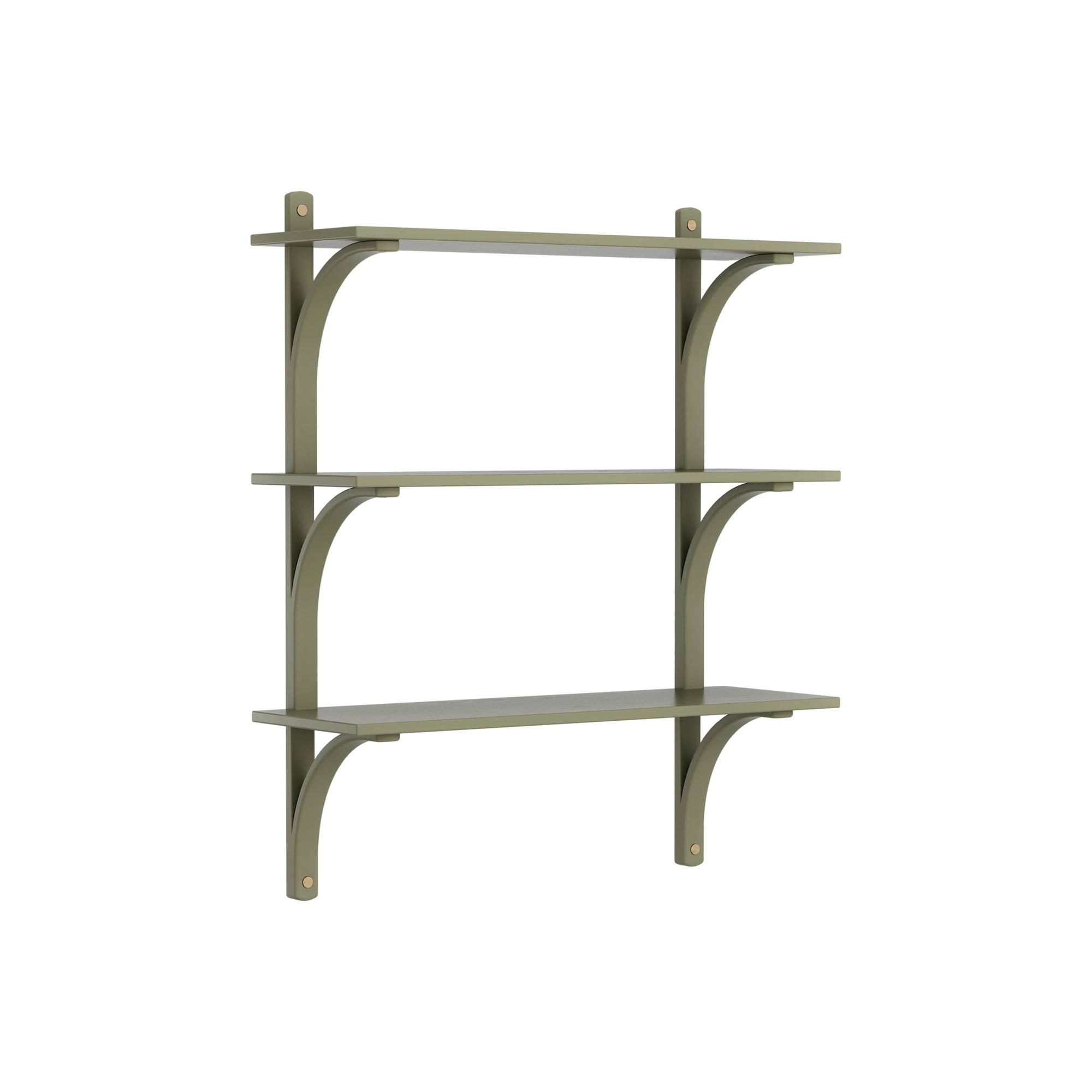 Schwedisches Levi-Regal 90 cm 3 Ablagen Messing/ Moosgrün/Esche