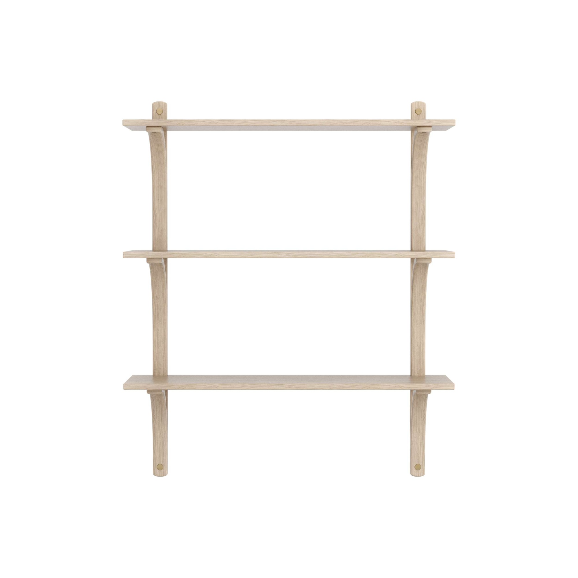 Schwedisches Levi-Regal 90 cm 3 Ablagen Messing/ Weiß pigmentierte lackierte Eiche