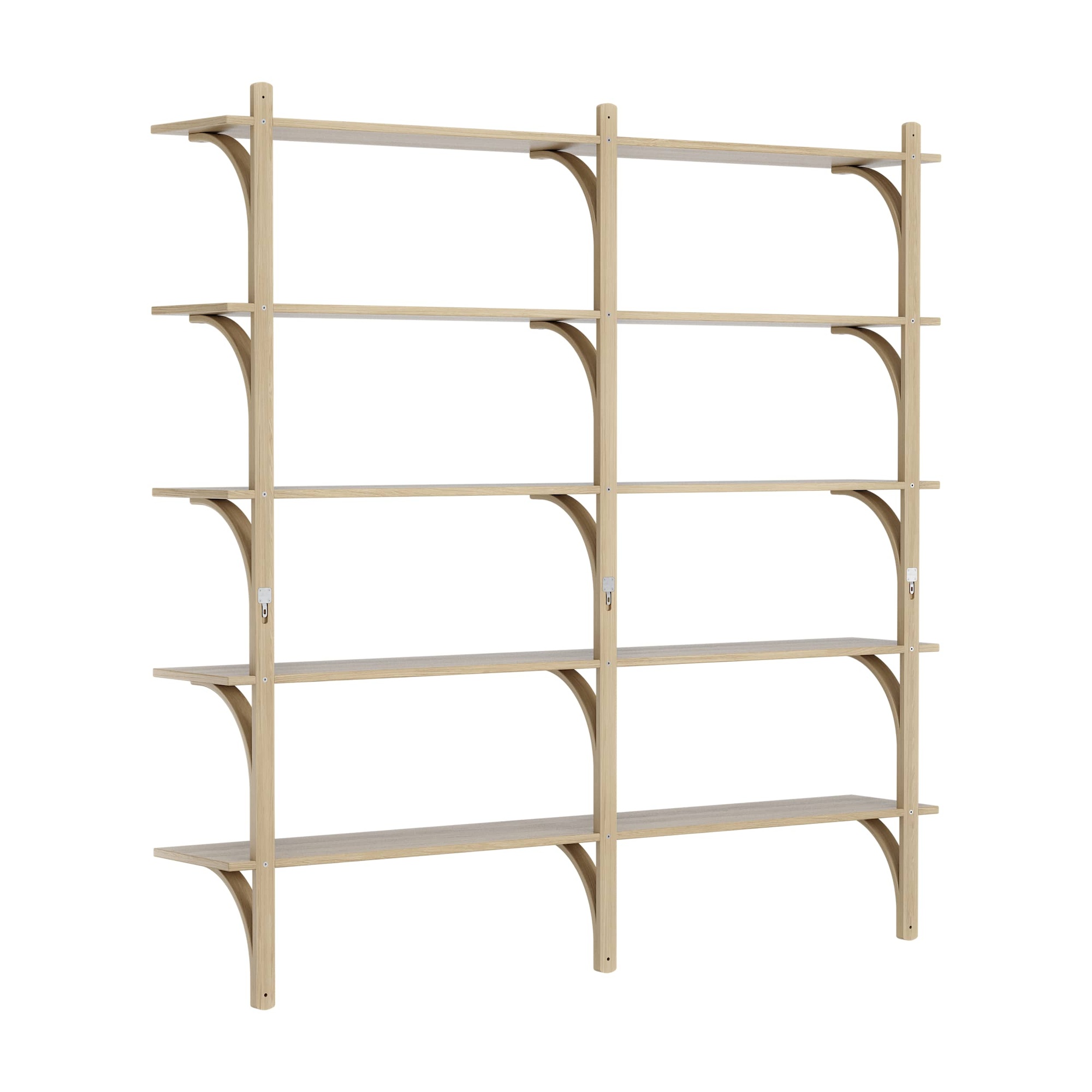 Schwedisches Levi-Regal 180 cm 5 Ablagen Aluminium/ Natur-Eichenlack