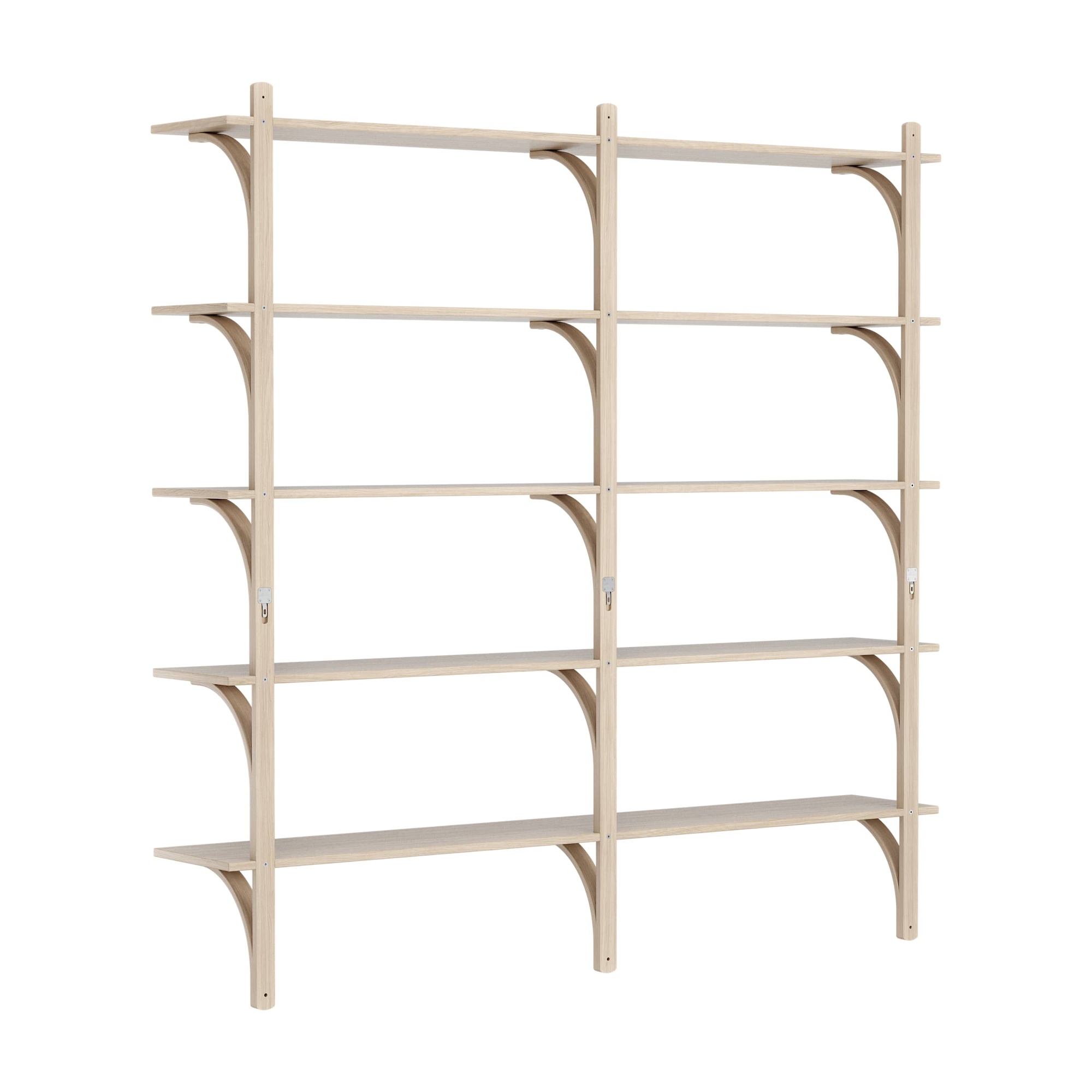 Schwedisches Levi-Regal 180 cm 5 Ablagen Messing/ Weiß pigmentierte lackierte Eiche