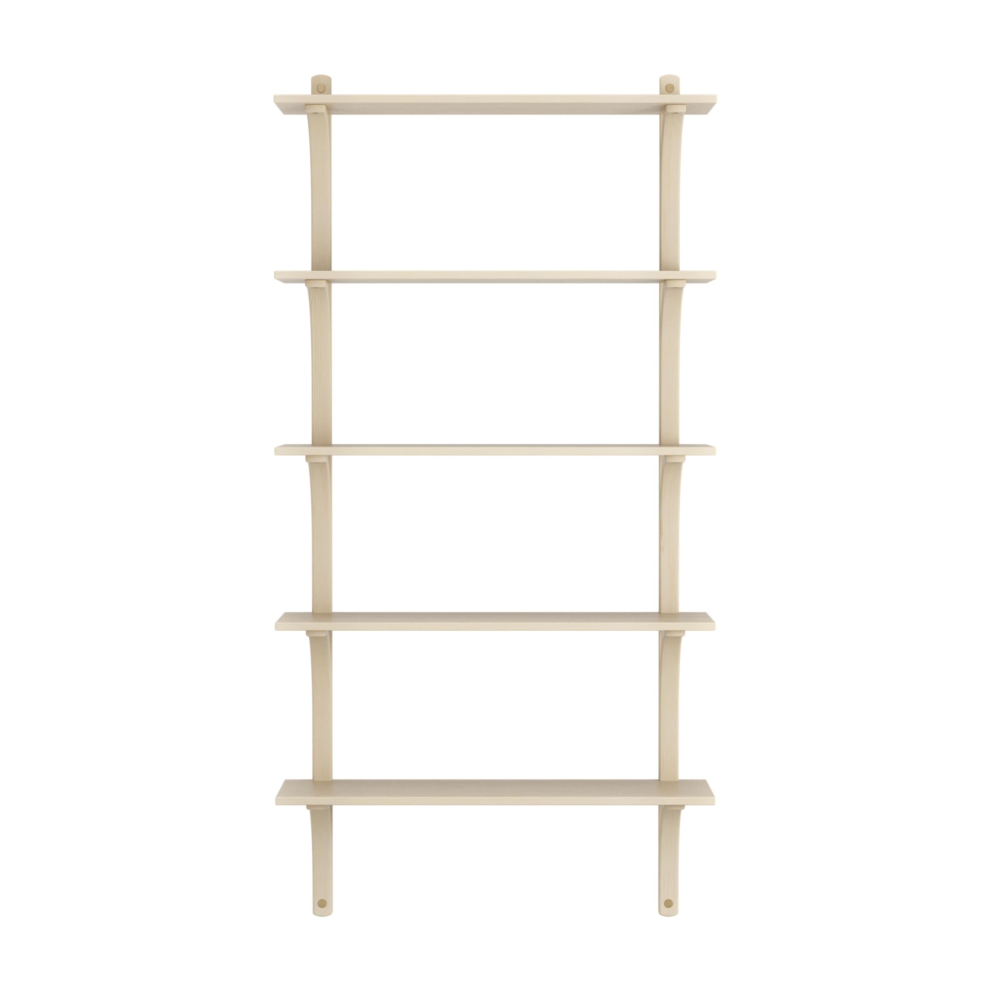 Schwedisches Levi-Regal 90 cm 5 Ablagen Messing/ Naturlack Esche