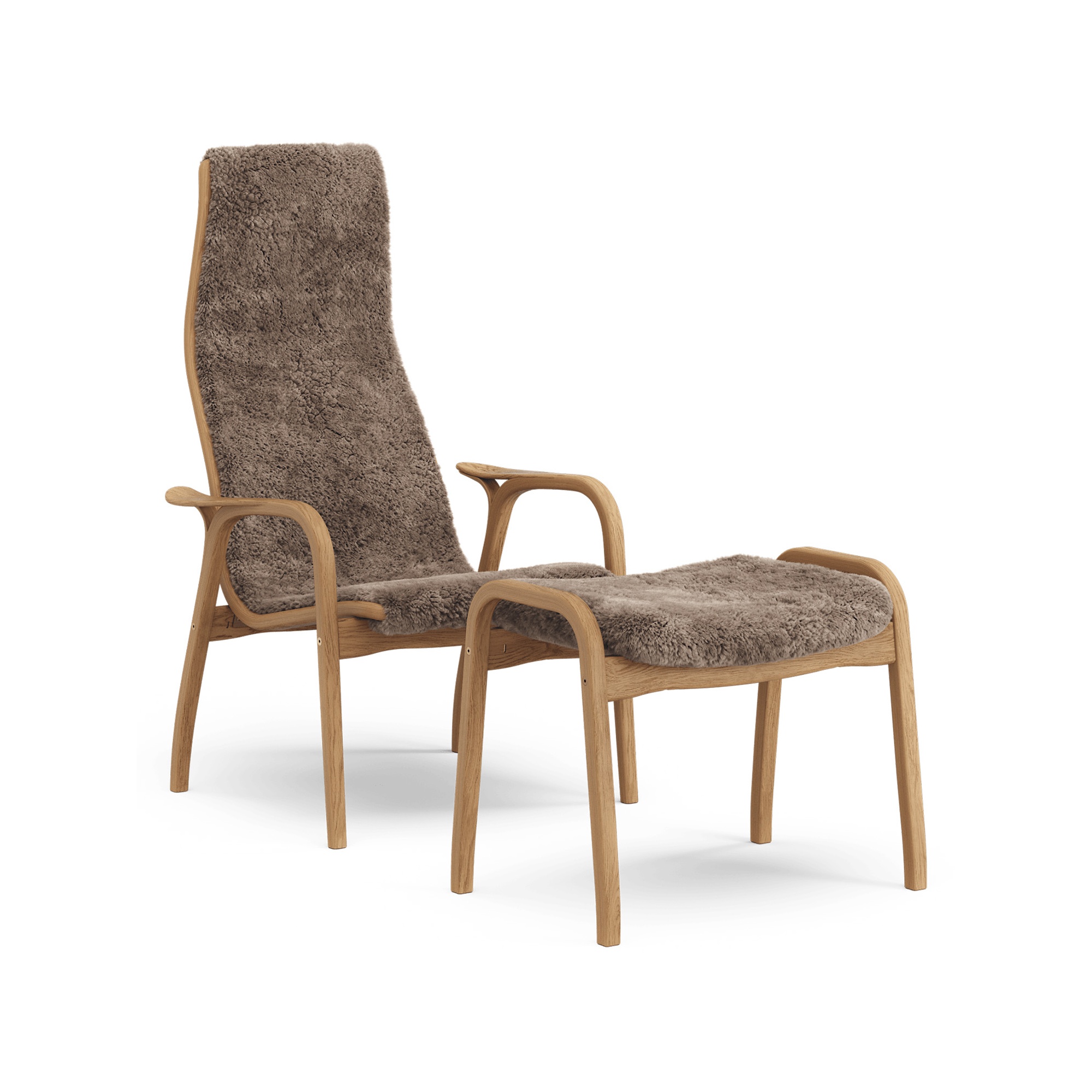 Swedese Lamino Sessel mit Fußhocker hoch, geölte Eiche/Sahara/Schaffell
