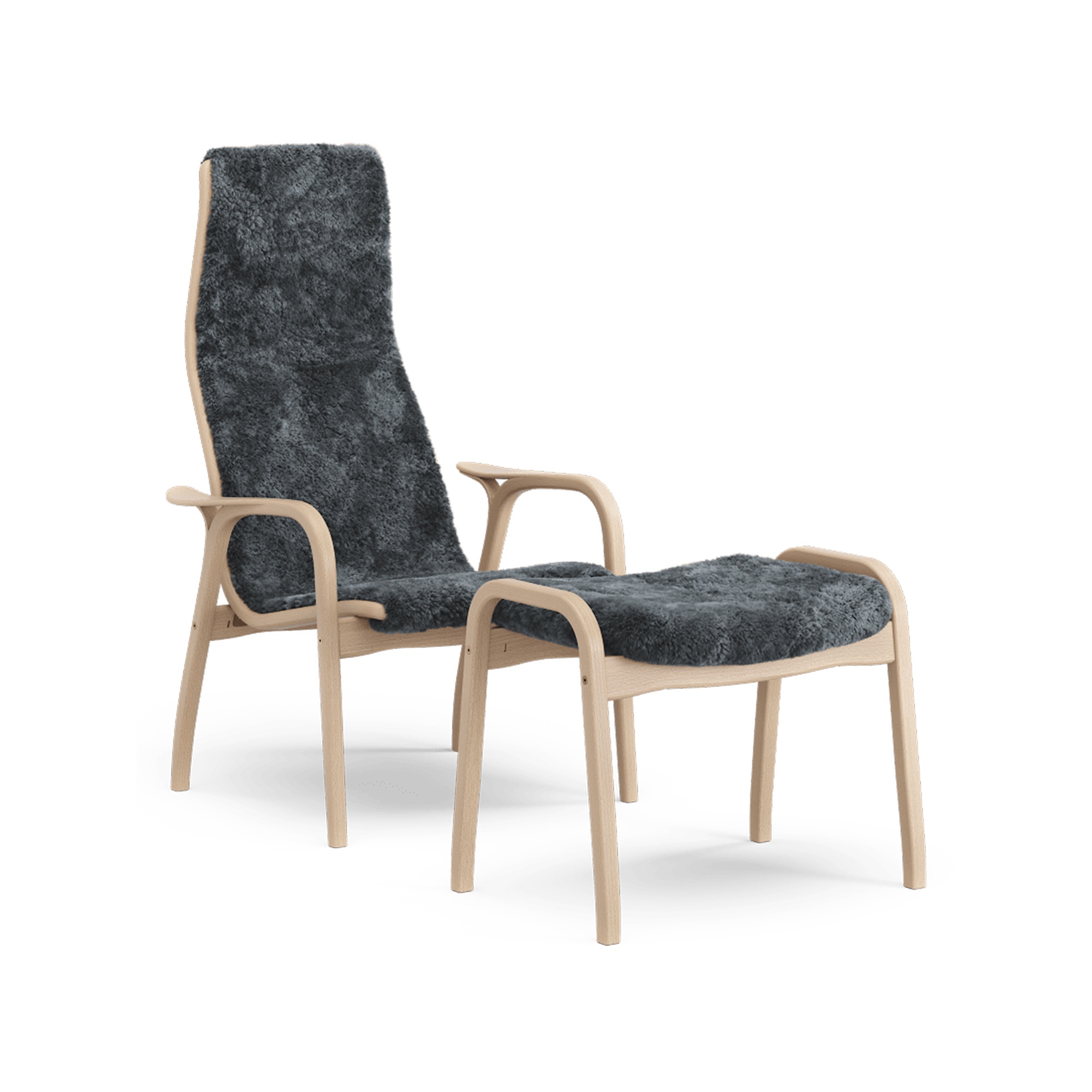 Swedese Lamino Sessel mit Fußhocker hoch lackiert Buche Eiche/Anthrazit/Schaffell