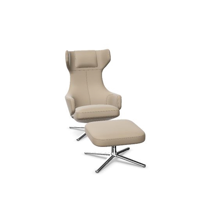 Vitra Grand Repos Sessel mit Hocker , Sand/ Chrom